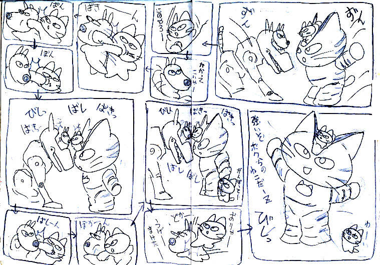 取りあえず「漫画風の絵コンテ」を描いたものが